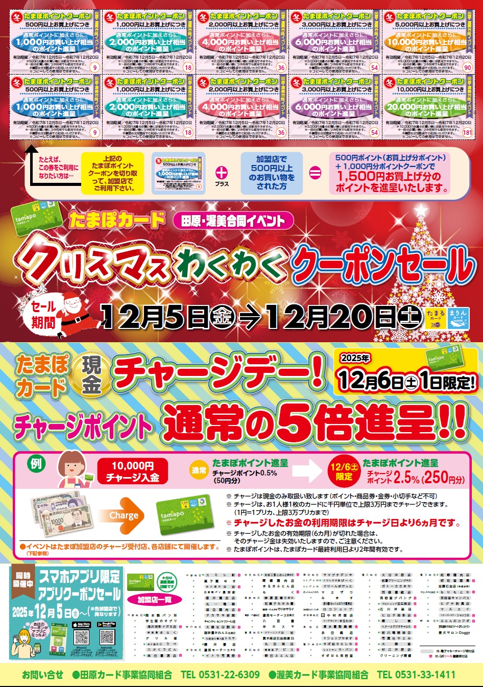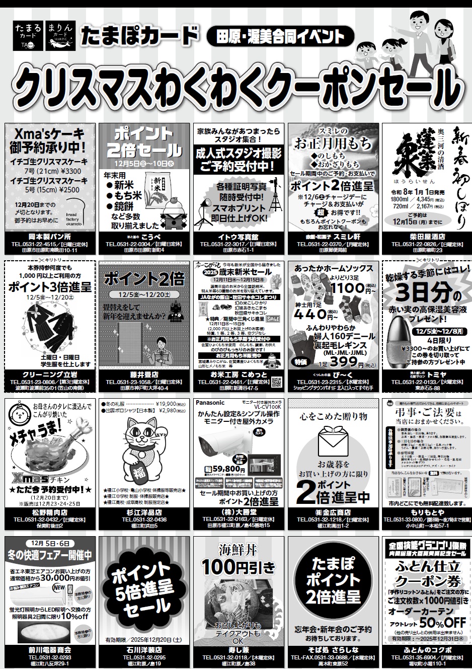 • たまぽカード「クリスマスわくわくクーポンセール」開催中です!