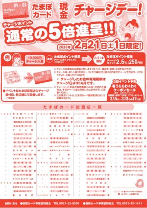 • たまぽカード「現金チャージデー」開催します!2月21日(土)1日限定