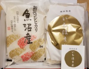 本体価格①銘柄米セット(魚沼コシヒカリ2kg・いちほまれ2kg)3,000円