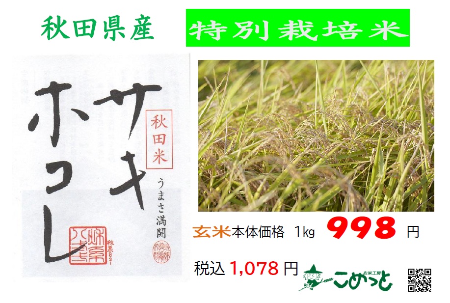 秋田県産特別栽培米「サキホコレ」が入荷しています!