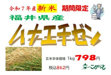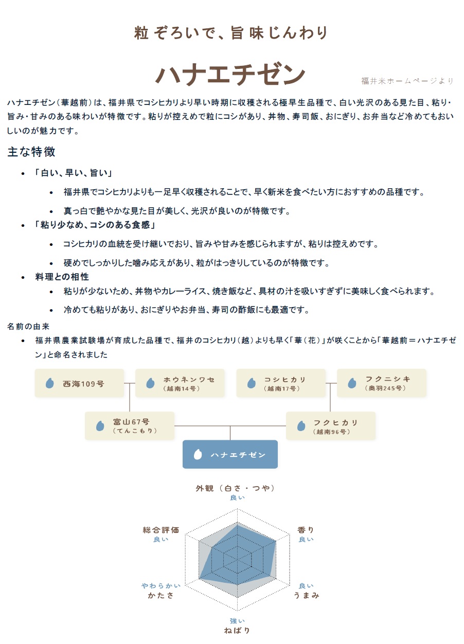 令和7年産新米 福井県産「ハナエチゼン」入荷しています!