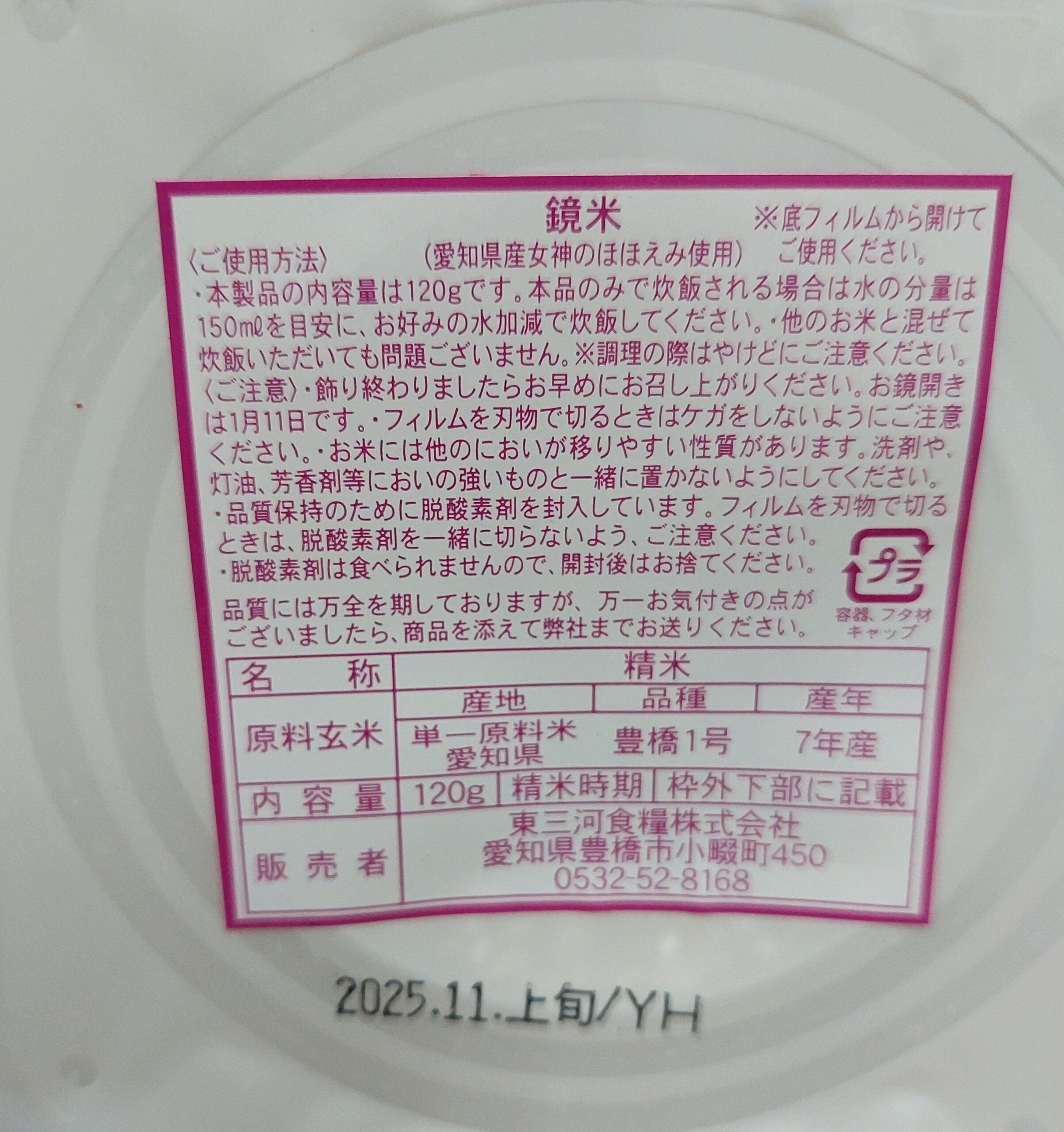 女神ほほえみ鏡米1ケ278円(税込300円) 5ケ1,390円(1,501円) 7ケ1,946円(税込2,102円)